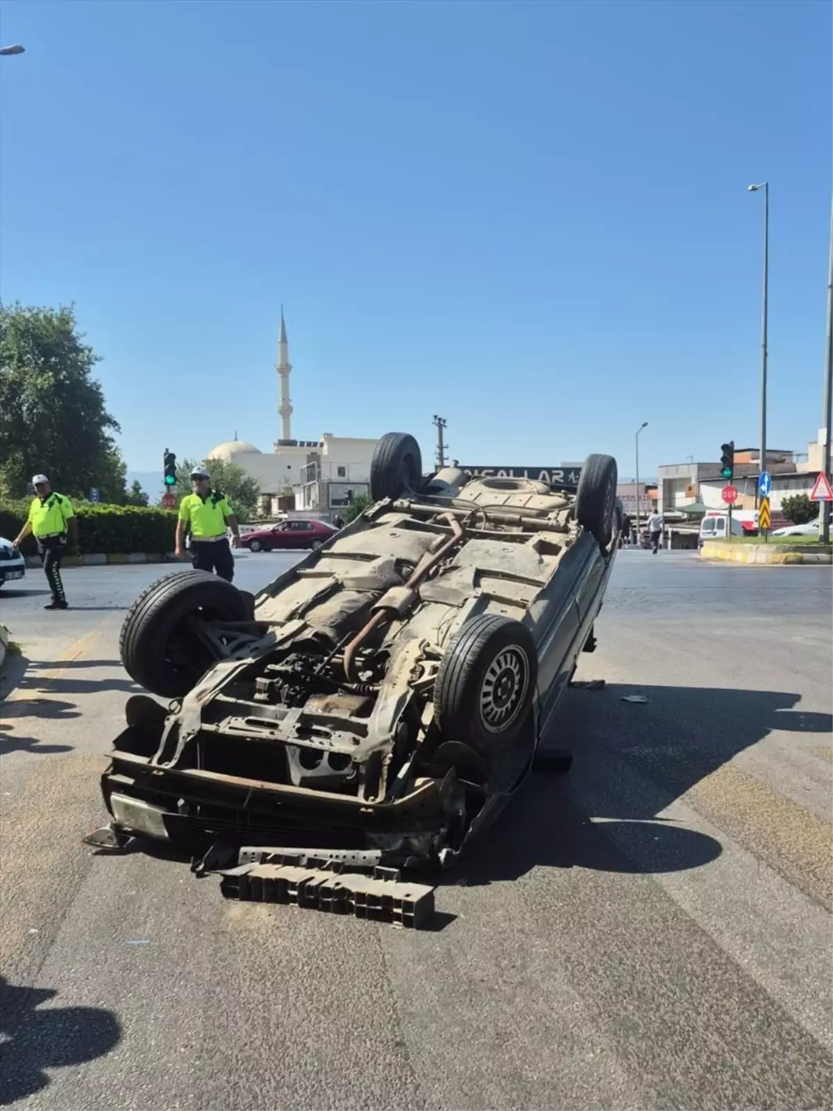 Alınan bilgiye nazaran, İzmir Bulvarı Bayındırlık Kavşağı’nda B.Ç’nin kullandığı 09 HN 712 plakalı araba, şoförünün direksiyon hakimiyetini kaybetmesiyle devrildi.