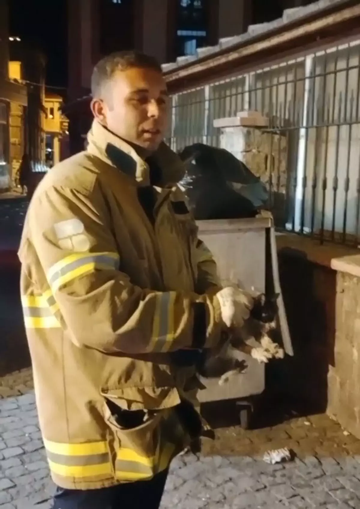 Ayvalık’ta dün saat 20.30 sıralarında bir otoparkta park halindeki 34 CEN 598 plakalı arabanın motoruna yavru kedi girdi. Şoför durumu yola çıktıktan kısa bir mühlet sonra fark edip, Atatürk Bulvarı’nda arabasını yol kenarına çekti. Yavru kediyi bulunduğu yerden çıkarmaya çalışan, fakat başarılı olamayan şoför 112 Acil Davet Merkezi’ni arayıp, yardım istedi. İhbar üzerine Haşim Ceylan, Hüseyin Sayar ve Tolunay İnlafoğlu’ndan oluşan 3 kişilik itfaiye takımı olay yerine sevk edildi. İtfaiye takımı, arabanın motoruna sıkıştığı belirlenen kediyi, kurtarmak için çalışma başlattı. Arabanın bulunduğu yerde trafiğin ağır olması ve motorun ortalarına eldivenle müdahalenin mümkün olmaması nedeniyle itfaiye grubu kurtarma çalışmasında zahmet yaşadı. Yavru kedi, kendisini kurtarmaya çalışan itfaiye erinin elini tırmaladı. 20 dakikalık uğraş sonucu bulunduğu yerden kurtarılan yavru kedi, sıhhat durumunun güzel olduğunun tespiti üzerine doğal ortamına bırakıldı.
