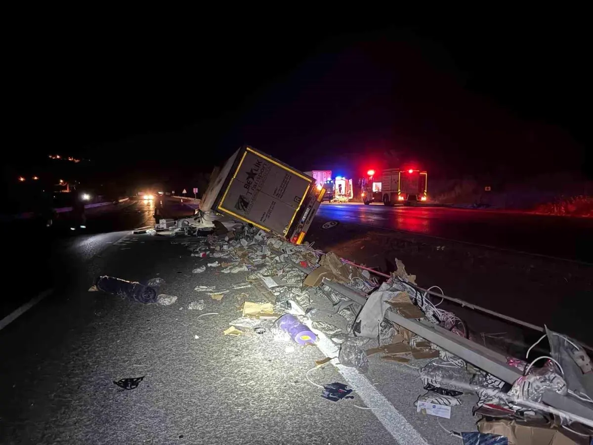 Edinilen bilgiye nazaran, 34 BOL 932 plakalı tır, şoförünün direksiyon hakimiyetini kaybetmesi sonucu yoldan çıkarak savruldu. Kazada hem cazibeli kısmı hem de 35 BGH 075 plakalı dorse kısmı yola savruldu.
