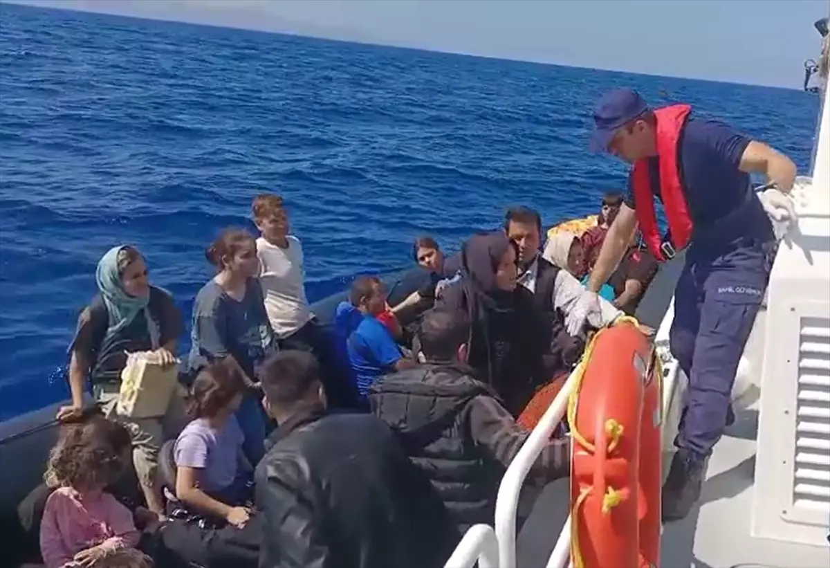 Lastik bot içindeki 14’ü çocuk 32 sistemsiz göçmen, Kıyı Güvenlik takımınca kurtarıldı.