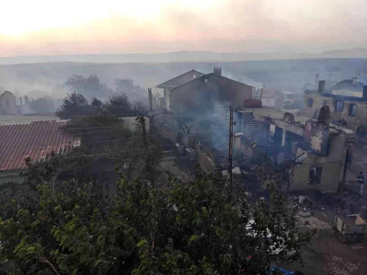 Çanakkale’nin Bayramiç ilçesinde çıkan orman yangınında, boşaltıldıktan sonra alevlere teslim olan Saçaklı köyünde büyük maddi hasar meydana geldi. Yangın sonrası soğutma çalışmaları dron ile görüntülendi.