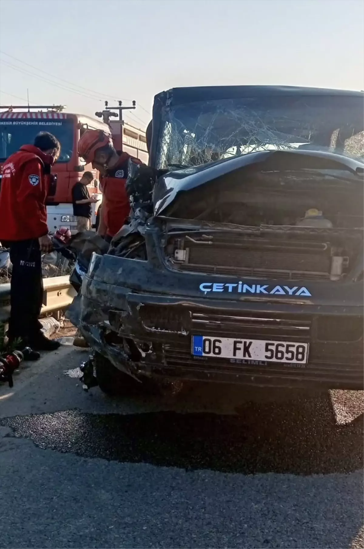 Çanakkale Edremit kara yolunun Altınoluk İskele Mahallesi yakınlarında Y.E. yönetimindeki 06 FK 5658 plakalı minibüs, birebir tarafta ilerleyen O.Y. yönetimindeki 10 N 0271 plakalı tomruk yüklü kamyona çarptı.
