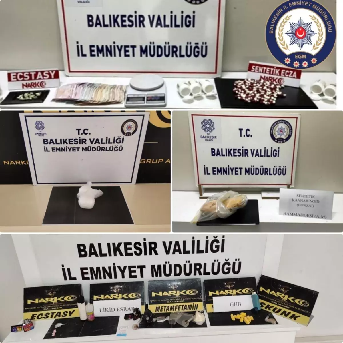 Edinilen bilgiye nazaran, Edremit İlçe Emniyet Müdürlüğü Narkotik Hatalarla Çaba ünitesi tarafından 05 Haziran 2025 günü ilçede gerçekleştirilen iki farklı çalışmada; 488,75 gram sentetik kannabinoid (Bonzai hammaddesi), 255 adet sentetik ecza hapı, 21 adet ecstasy hap, 1 adet hassas terazi ile kabahatten elde edildiği bedellendirilen 5 bin 70 TL nakit para ele geçirildi.