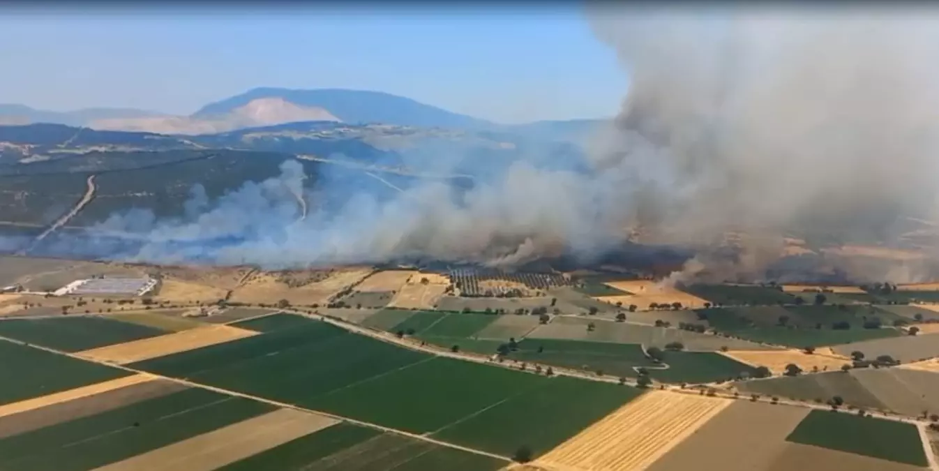 İZMİR’in Kınık ilçesinde ormanda yangın çıktı. Gruplar, yangına havadan ve karadan müdahale ediyor.
