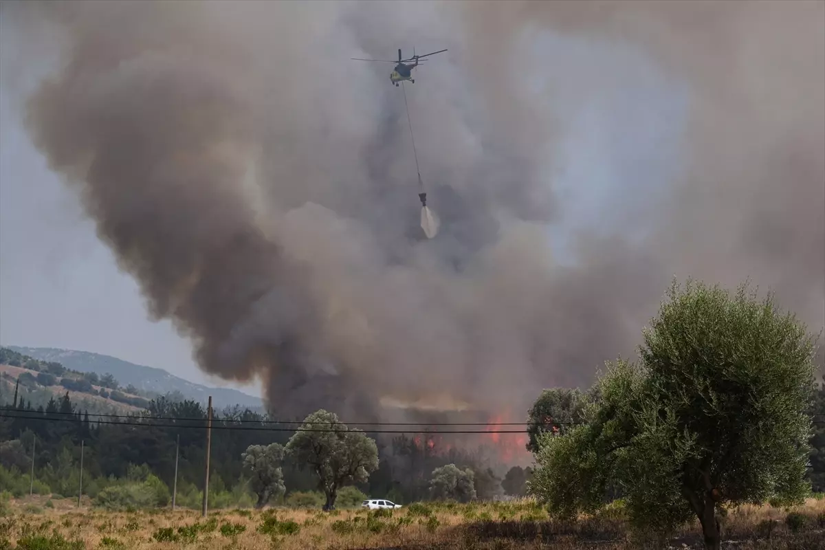 Yangına müdahale için İzmir Orman Bölge Müdürlüğü, tüm ekipman ve insan gücünü seferber etmiş durumda. 4 uçak, 6 helikopter, 16 arazöz, 4 su ikmal aracı ve 3 dozer bölgeye yönlendirildi. Havanın sıcak, nem oranının düşük ve rüzgarın kuvvetli olması söndürme çalışmalarını zorlaştırıyor.