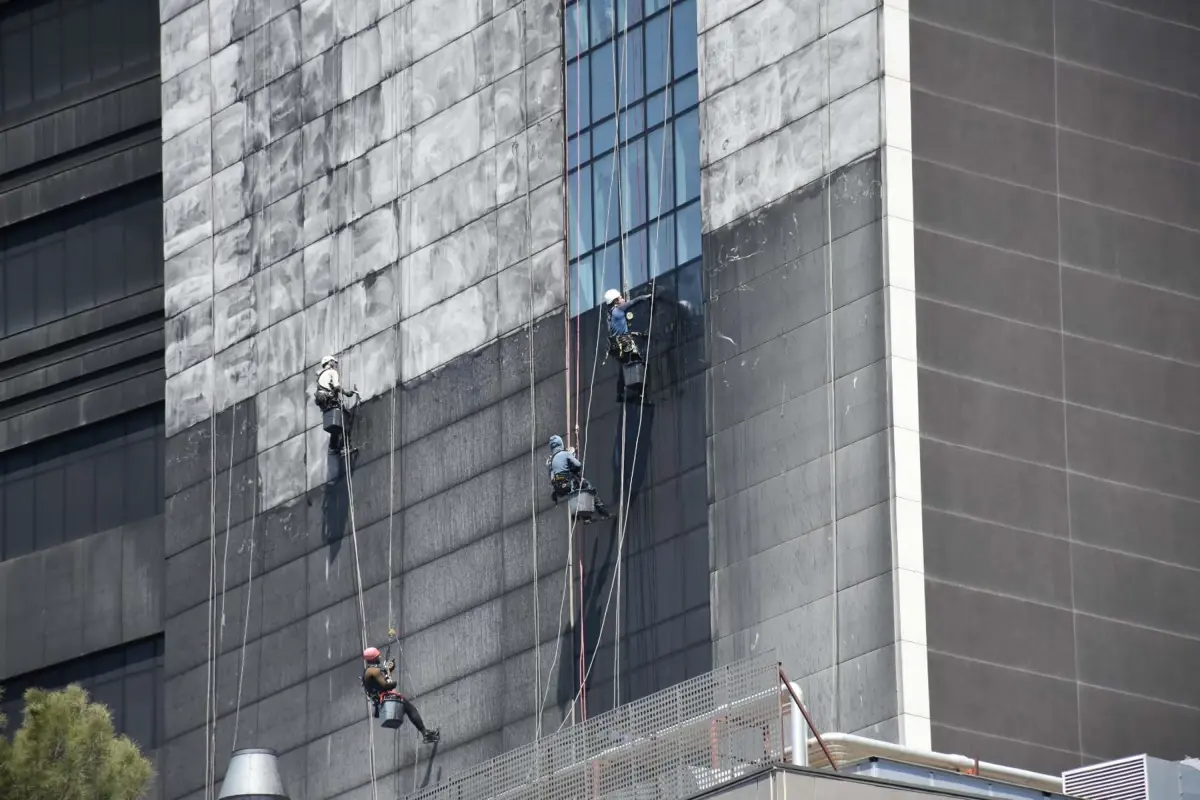 İzmir’in Konak ilçesinde plastik fabrikasının deposunda çıkan yangında, bitişikte bulunan ve ağır duman nedeniyle dış cephesi kararan özel hastanede, sabah saatlerinde paklık çalışması başlatıldı. İp sistemiyle çatıdan aşağıya sarkan paklık takımları, dış cephedeki paklık çalışmasını sürdürüyor. Öte yandan yangının çıkış nedenine ait inceleme sürüyor.