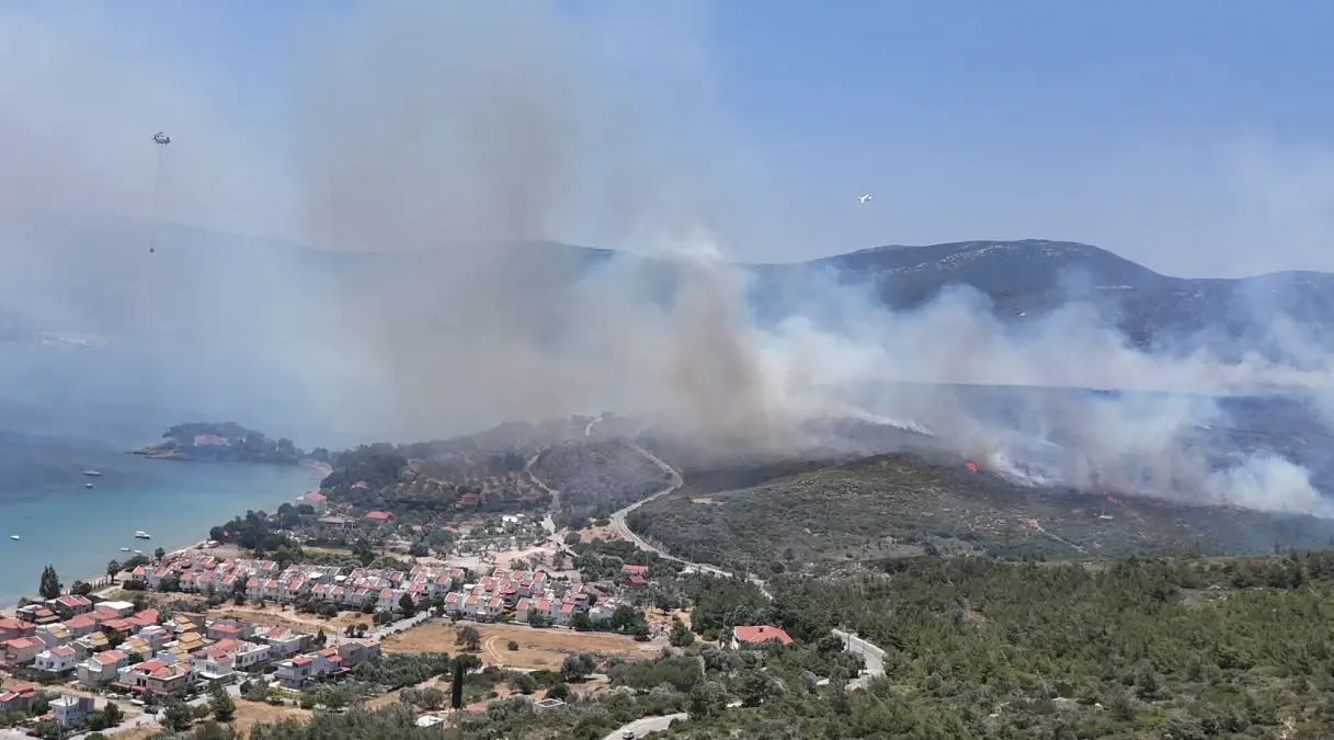 İzmir‘in Karaburun ilçesindeki orman yangınına; AFAD, Orman Bölge Müdürlüğü ve İzmir Büyükşehir Belediyesi’ne bağlı itfaiye gruplarının havadan ve karadan müdahale sürüyor. Arazinin dağlık olması ve kuvvetli rüzgar nedeniyle söndürme çalışmalarında zahmet yaşanıyor. Bölgedeki beton santral fabrika çalışanları ile vatandaşlar da ferdî araçları ve tankerler ile söndürme çalışmalarına takviye veriyor. Jandarma, Manal Koyu etrafında anonslarla konutlarını boşaltmaları konusunda uyarıyor. Takımların müdahalesiyle alevlerin yerleşim yerlerine ulaşmasının önüne geçildi. Alevler nedeniyle biri metruk 2 konut ziyan gördü. Öte yandan yanan orman, havadan görüntülendi.