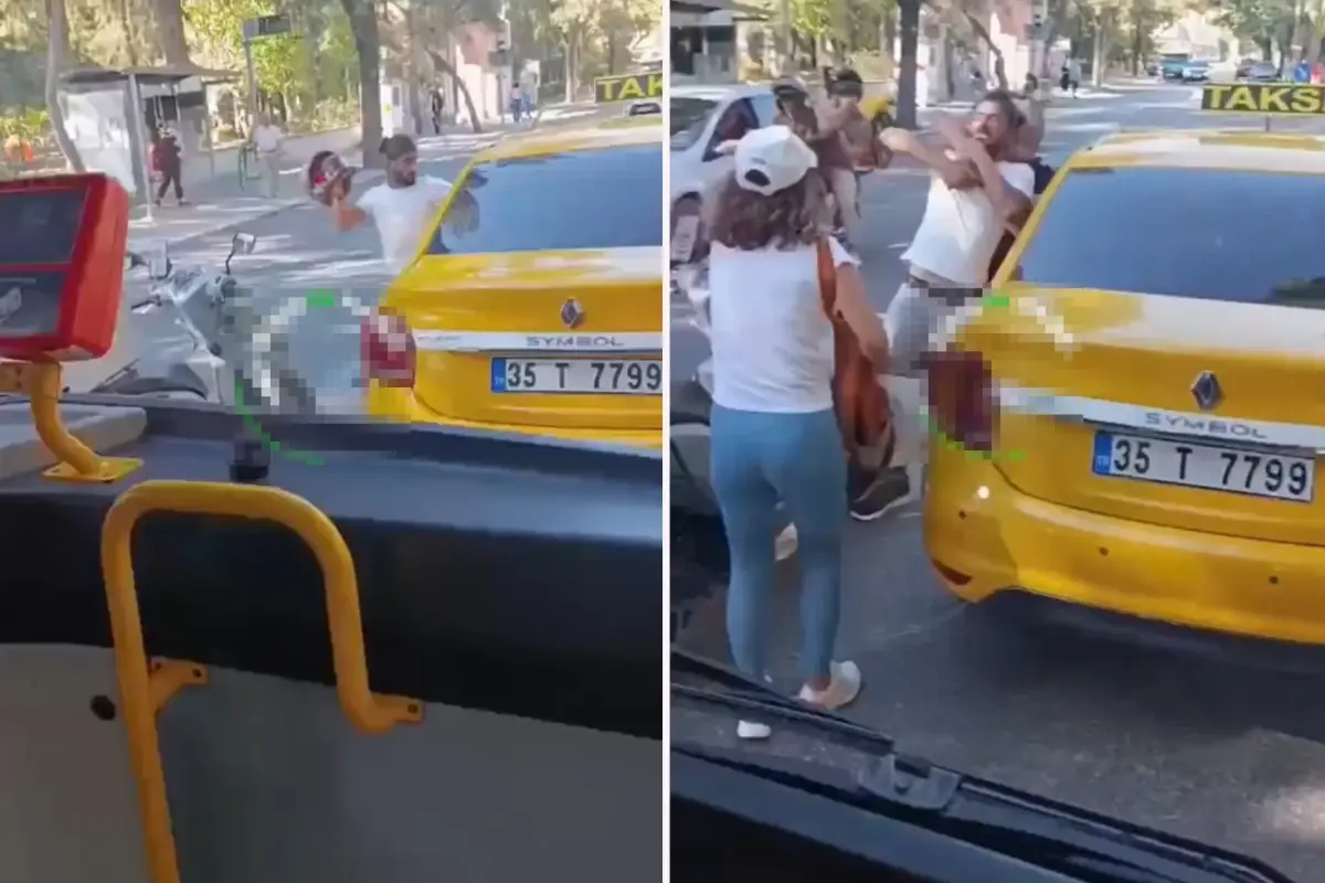 Motosikletliyi uzun mühlet darbeden taksi şoförünü sakinleştirmek kolay olmadı. Etraftakilerin ortaya girmesiyle arbede sona erdi. Olay, bir vatandaşın cep telefonu kamerasına yansıdı.